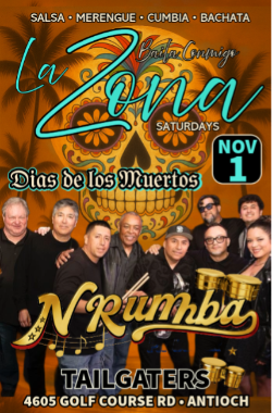 Oct 25 - Orq Nueva Era / La Zonaween | Nov 1 - Orq N'Rumba - Dia De Los Muertos | Nov 8 - Julio Bravo y Orq Salsabor |